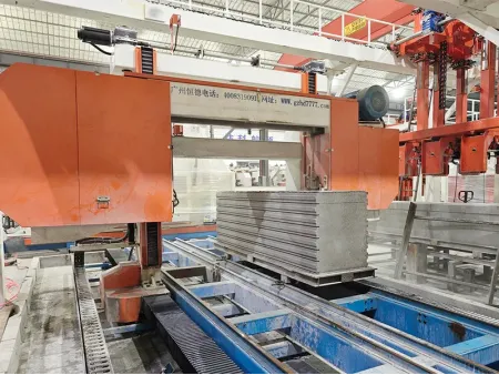قاطعة أفقية ثنائية المسار مع هيكل جسري لقطع الكتل والألواح الخرسانية Double-Track Gantry Horizontal Concrete Cutter