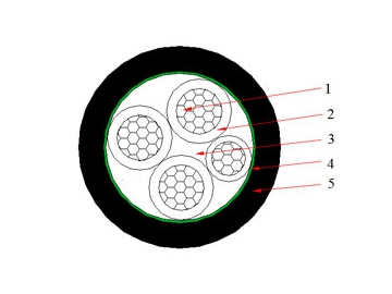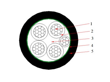 | 1. الموصل: النحاس أو الألومنيوم، التصنيف 1: الموصل المصمت، أو التنصيف 2: الموصل المجدول 2. الطبقة العازلة: بولي فينيل كلوريد PVC 3. الغلاف الداخلي: بولي فينيل كلوريد PVC | 1. الموصل: النحاس أو الألومنيوم، التصنيف 1: الموصل المصمت، أو التنصيف 2: الموصل المجدول 2. الطبقة العازلة: بولي فينيل كلوريد PVC 3. المادة المالئة (الحشو): مادة غير ماصة للرطوبة 4. شريط الربط: مادة غير ماصة للرطوبة 5. الغلاف الداخلي: بولي فينيل كلوريد PVC |